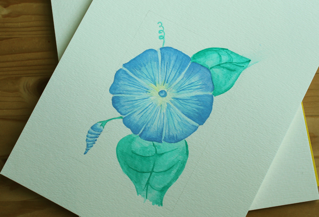 My first watercolor attempt: a morning glory and a fuchsia. You will notice a theme in my artwork.